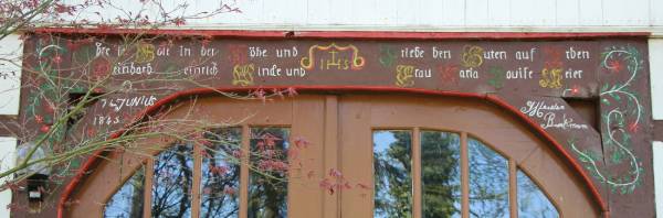 Der Hof Burauel-Richter war bis 1900 der einzige katholische Hof in Oesterweg. Davon zeugt das katholische Zeichen in der Mitte des Torbogens: