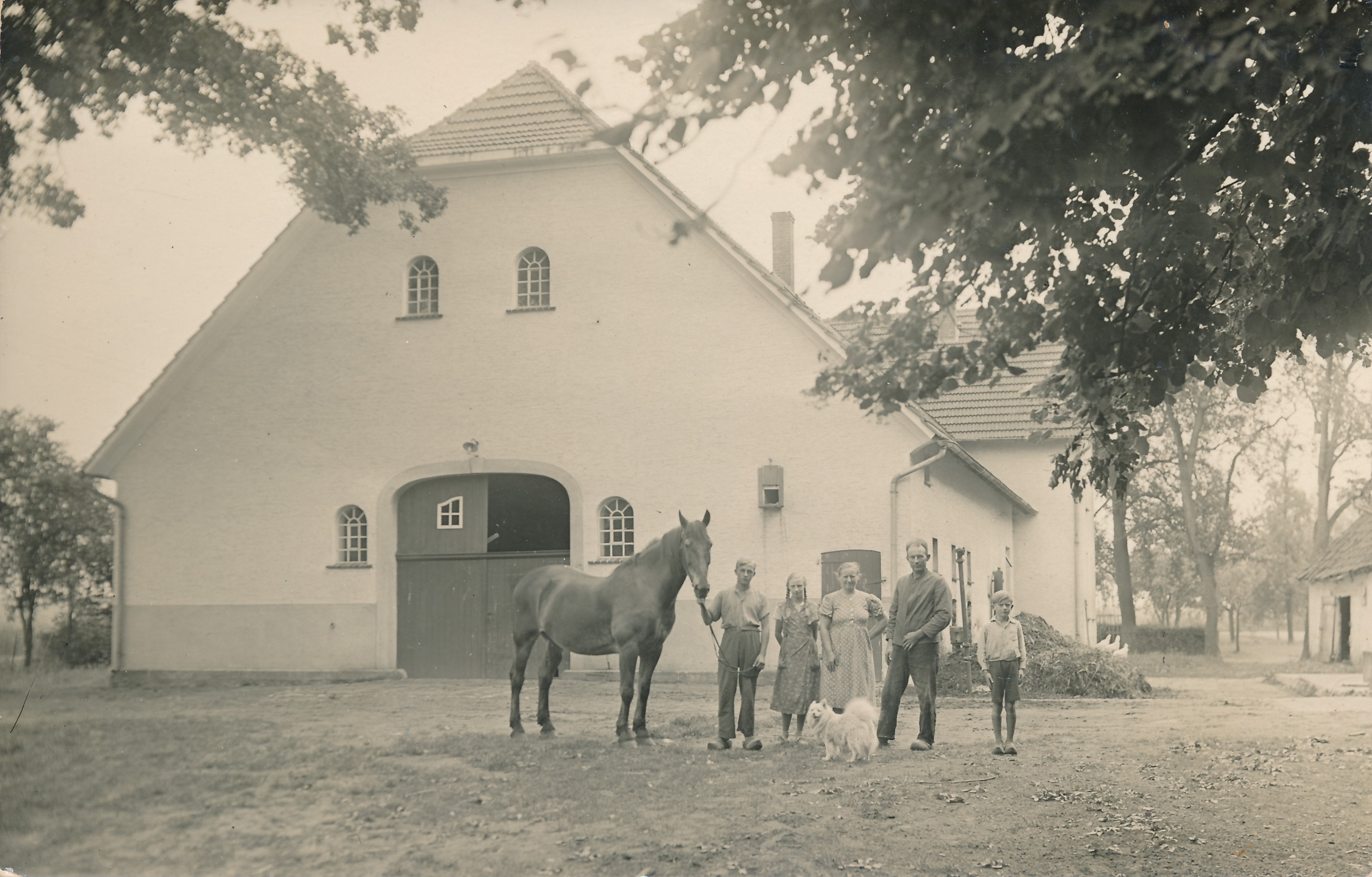 Ab 1899 ist Heinrich Höllmer als Bewohner der Hofstätte eingetragen. Er hatte keinen Zunahmen Beins. Das nachfolgende Bild ist 1938 entstanden und zeigt Friedrich Höllmer mit Frau und Kindern.