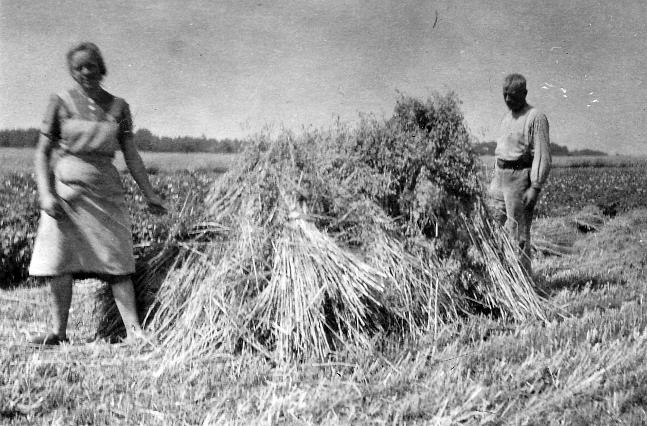 Heinrich Holtkamp schreibt den vierten Teil. Ihn sehen wir weiter unten auf einigen Bildern. Es geht weiter aufwärts mit dem Hof. Schon schnell nach dem 2. Weltkrieg wird eine Sämaschine und ein Heurechen angeschafft. Bis zu der Zeit wirtschaftet man mit Pferden. Hier einige Bilder aus der Zeit: